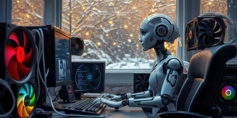 壁が窓に変わり、雪が降っています。