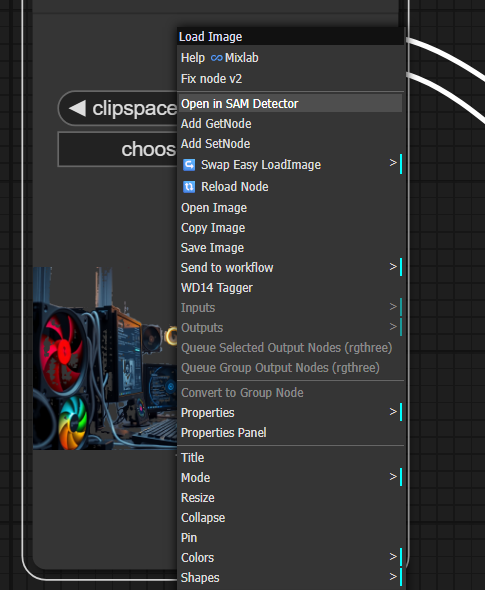 ComfyUI上で画像を右クリックして「Open in SAM Detector」を選ぶことで、直感的にマスク領域を指定できます。