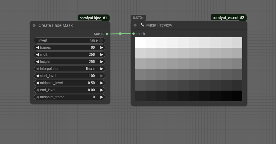Create Fade Maskノード(ComfyUI / KJNodes)の特徴は、画像生成や編集において滑らかなフェード効果を持つマスクを作成するための強力なツールです。以下に主なポイントをまとめます: