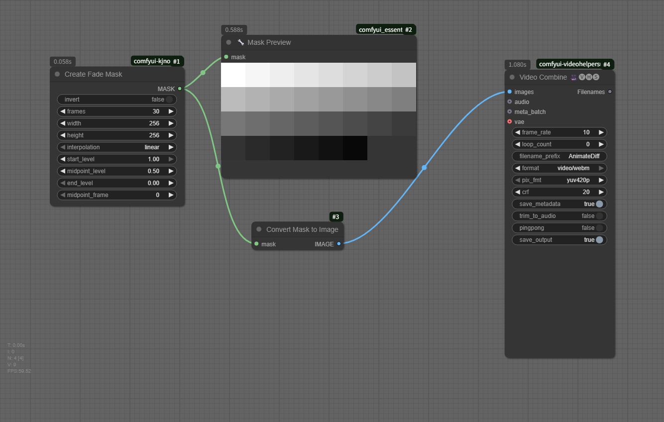 他にもマスク生成系ノードには、`CreateGradientMask`, `CreateShapeMask`, `CreateFluidMask`などがあり、用途に応じて使い分けると効果的です。