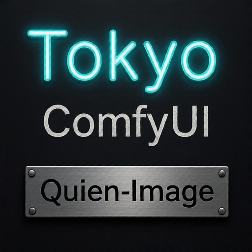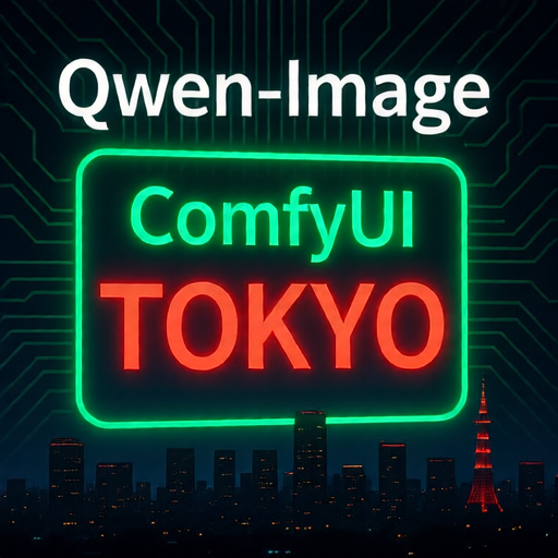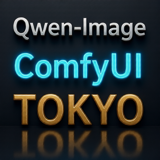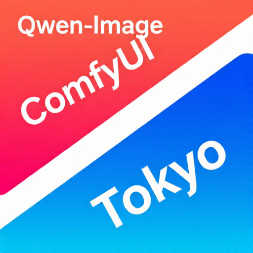 'Qwen-Image', 'ComfyUI', and 'Tokyo' arranged diagonally from top-left to bottom-right, with gradient colors from red to blue