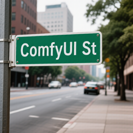A rectangular street sign with the words 'ComfyUI St' in bold white letters