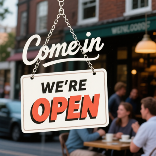 - 'OPEN' written in bold pop-style letters, playful and eye-catching.
