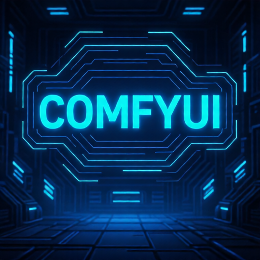 'ComfyUI' in glowing neon blue letters