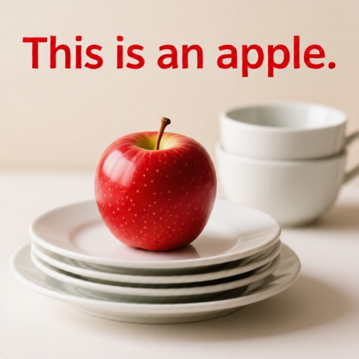 At the top center in red letters: 'This is an apple.'.