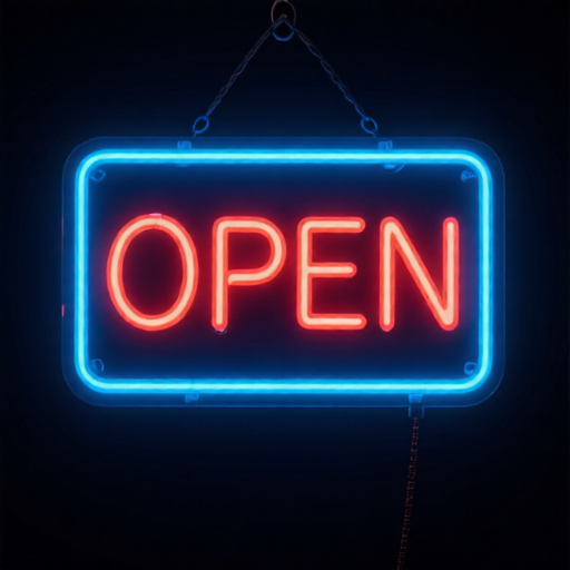 A neon sign reading "OPEN" |