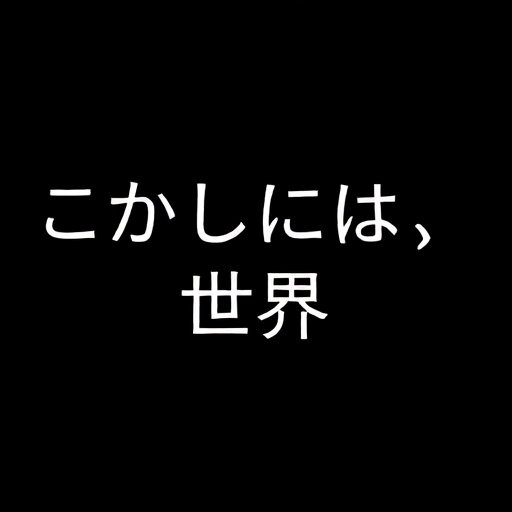 "こんにちは\n世界" in bold white letters on a black background