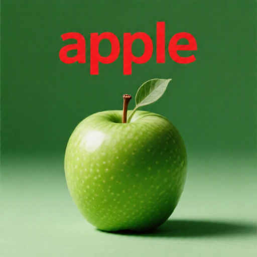 (color:green)apple, 'apple' in red letters at the top center, |