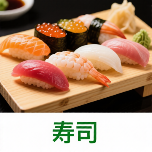 At the bottom center in small bold letters colored green: '寿司' |