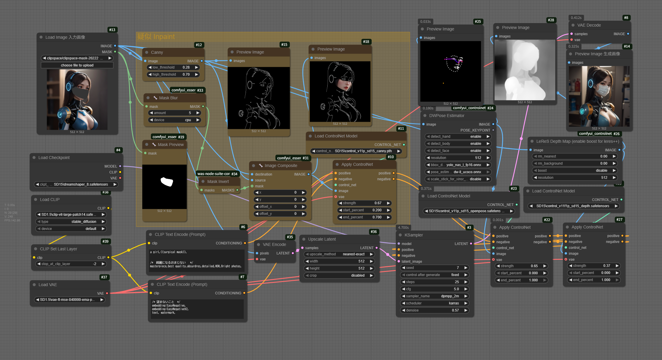 「Canny Edgeのマスク領域を意図的に欠損させ、ControlNetに修復を暗示させる」という発想です。