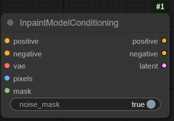InpaintModelConditioning は、Stable Diffusion 1.5(SD1.5)での inpainting(画像の一部を補完・再生成する処理)において、マスクされた領域に対して適切な生成を行うための条件付け(conditioning)を行うステップです。