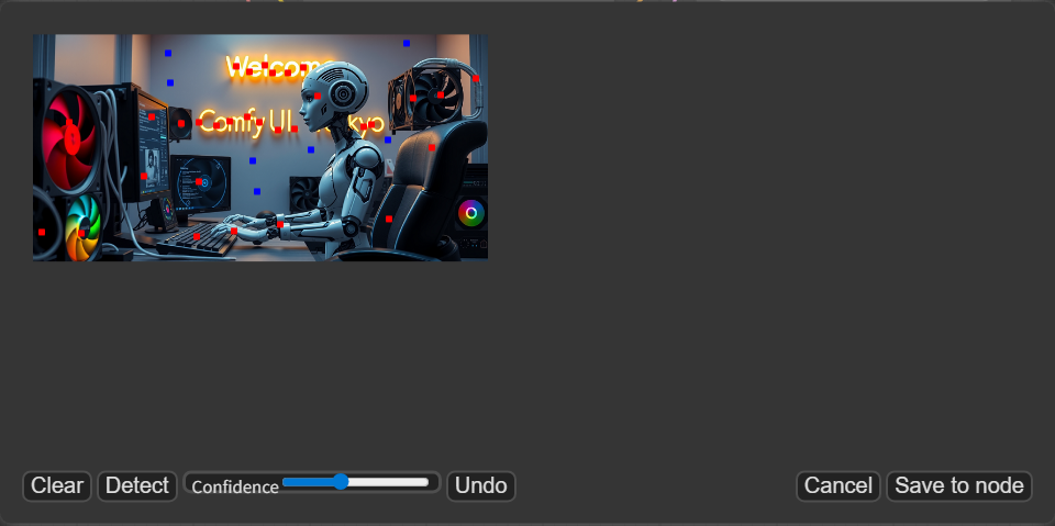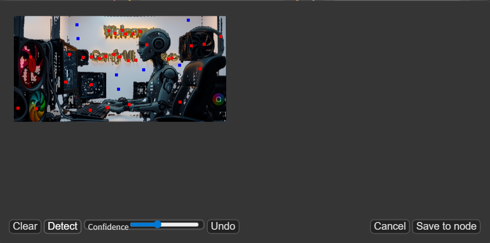 - 点を指定した後に「Detect」を押すと、SAMモデルが画像を解析し、指定に基づいたマスクを生成します