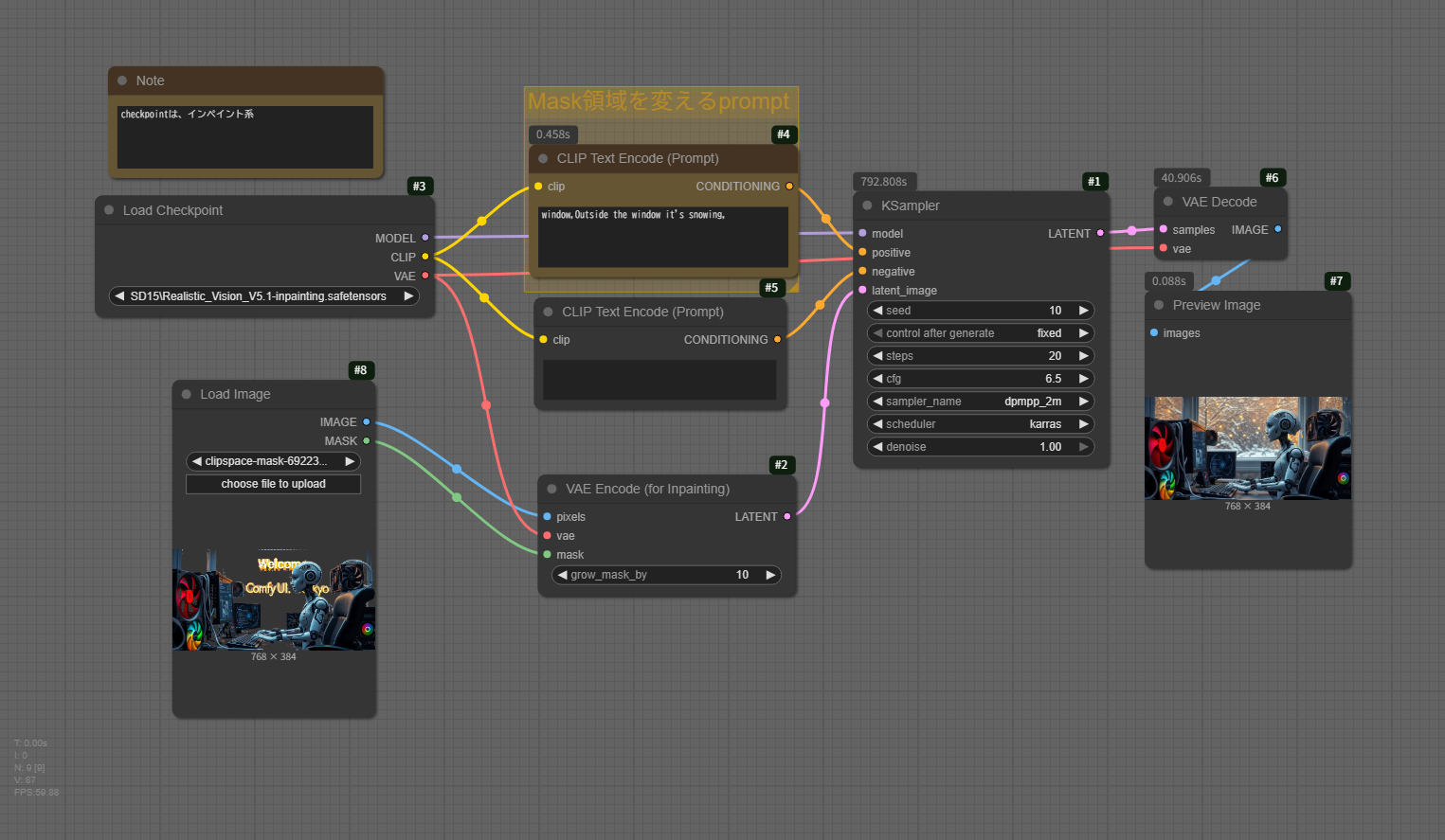 checkpointは、インペイント系を使用してください。