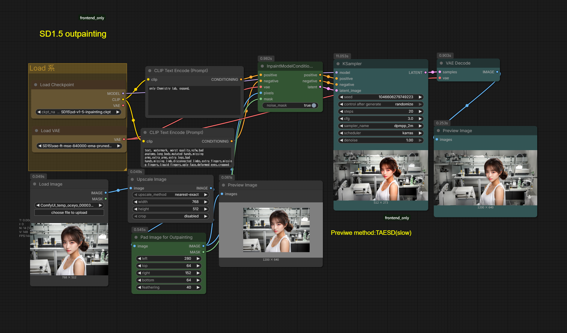 - Stable Diffusion 1.5 は高品質な画像生成で知られるモデルであり、Pad Image ノードはこのモデルを前提に設計されています。特に「既存画像の保持」と「拡張部分の自然さ」の両立に優れています。