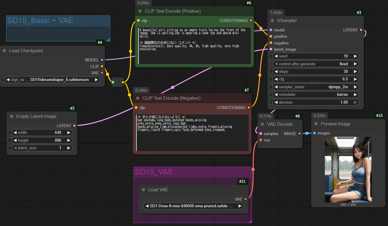 結論として、ComfyUI SD1.5で基本的な画像生成を行う場合でも、vae-ft-mse-840000-ema-pruned.safetensors を別途使用することは、生成される画像の全体的な品質、特に顔や手などの細部の表現、色の再現性を大きく向上させるため、非常に推奨されるプラクティスです。