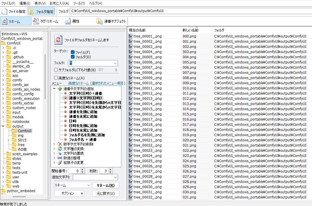 結果は、ComfyUIのoutputにComfyUIフォルダに入るようにしました。リナンバーソフトで書き換えます。
