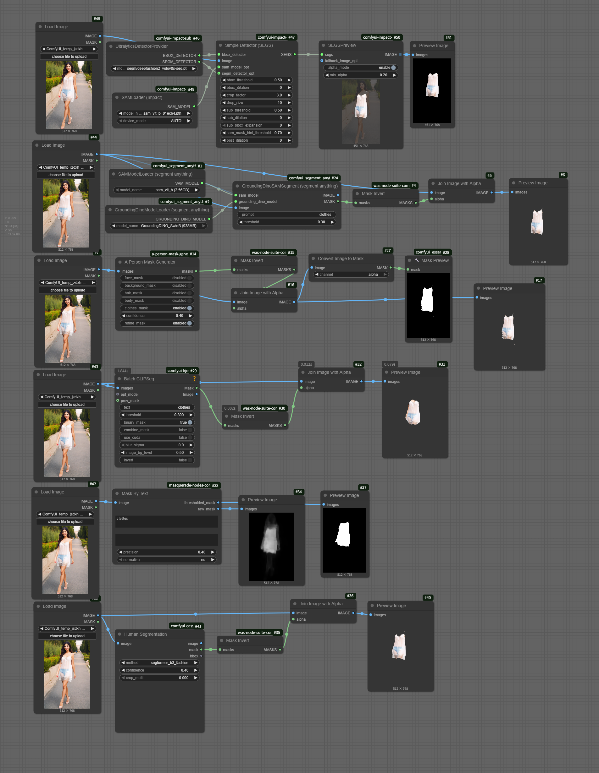 | 特定の服・部位の抽出 | A Person Mask Generator, CLIPSeg, SAM, OneFormer |