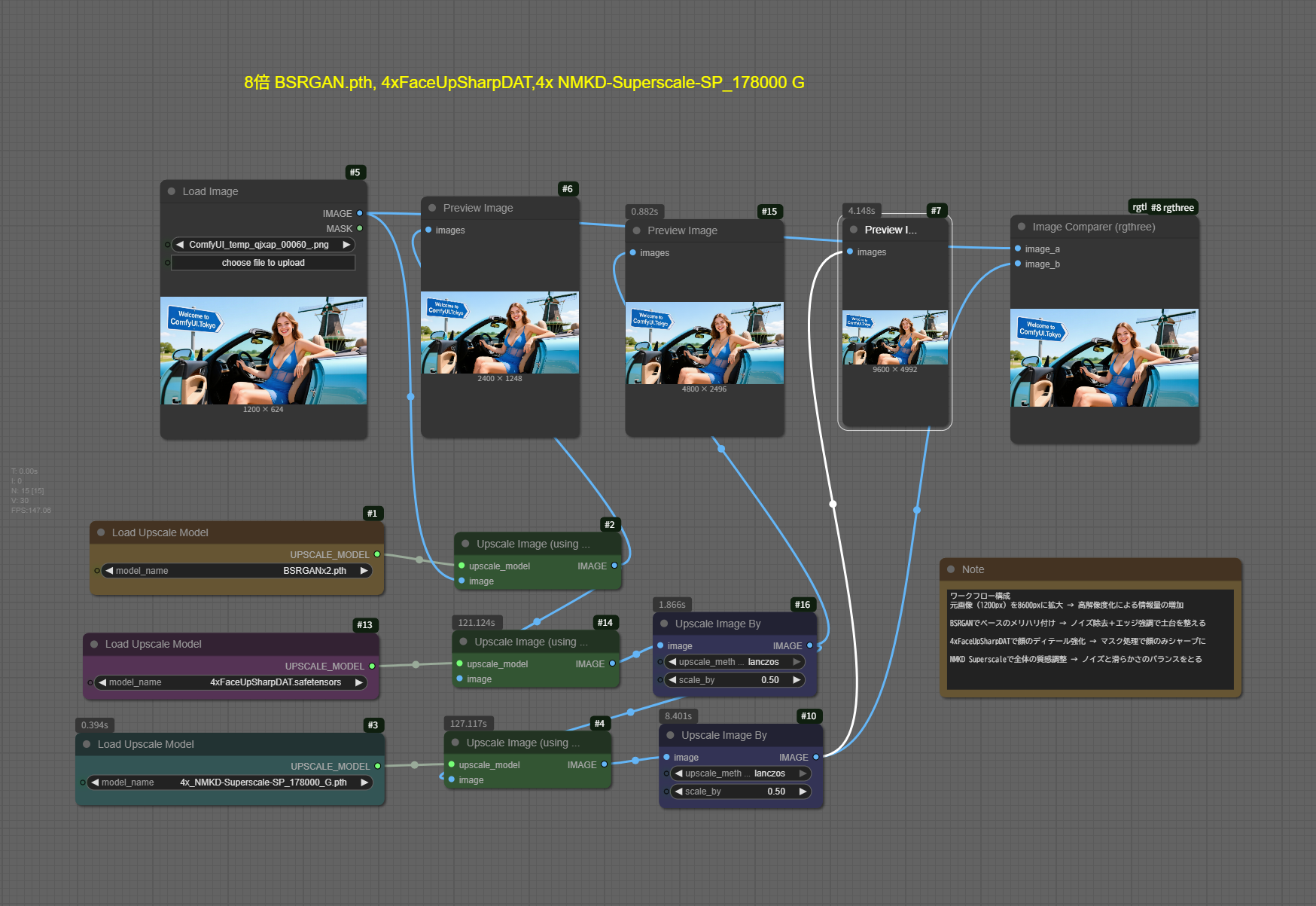 - NMKD Superscaleで全体の質感調整 → ノイズと滑らかさのバランスをとる